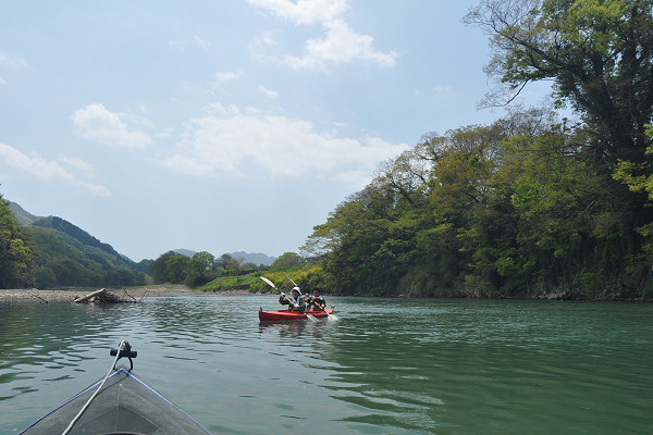 艇庫前のすのーべる淵から出て、12.5km先の立野大橋右岸をゴールに決めた。