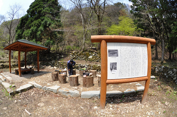分校跡地は東屋も建って整備された。案内板には最後の住人冨山利一さんの思