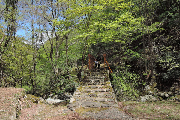 源太夫滝の展望所から山道に入り、4歳児には少し危なっかしい崖道を通過し