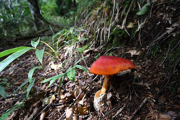 やがて道はブナ帯に入る。ドクツルタケが多い。クチベニタケ、タマゴタケ。