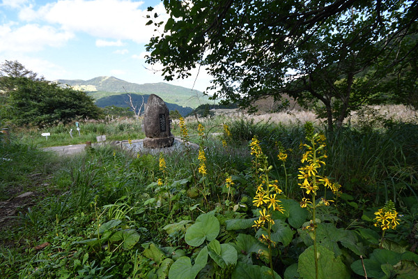 小屋から25分の歩きで東尾根登山口に出る。オタカラコウが見送ってくれた。