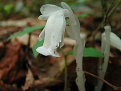 ブナの陰にギンリョウソウが目に付く。登山路には昨秋落としたブナの実が