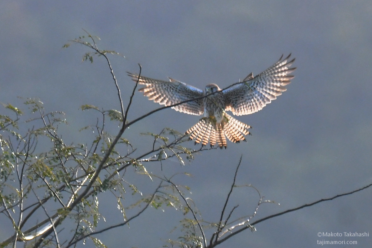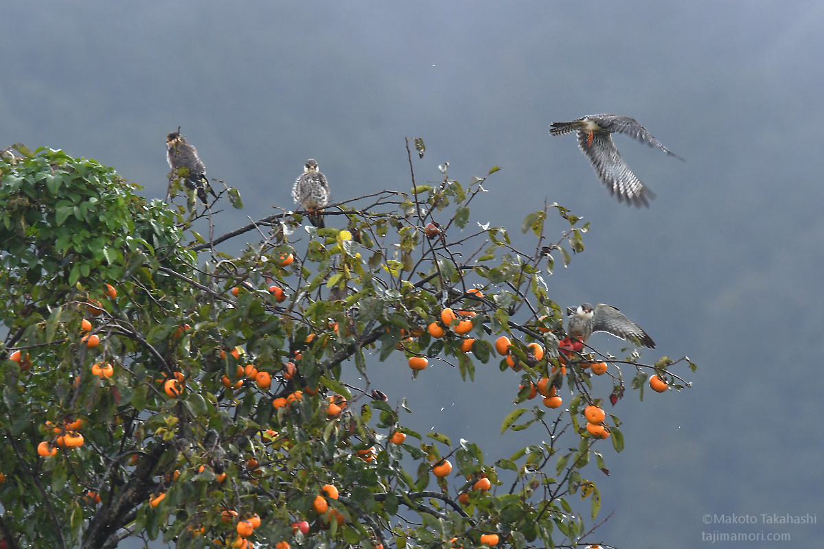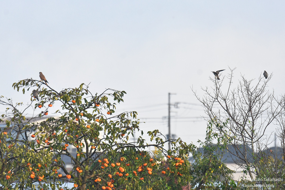 前日の4羽引き続き逗留。チョウゲンボウ2羽がときどきモビングにやってくる。