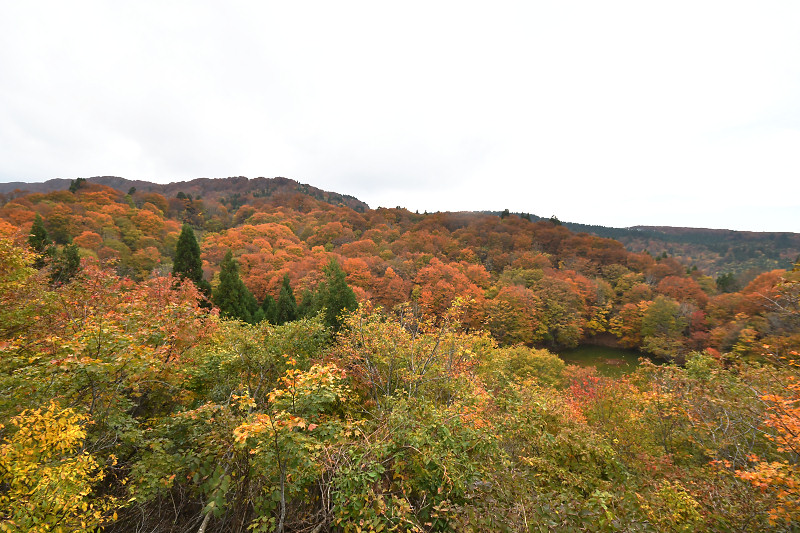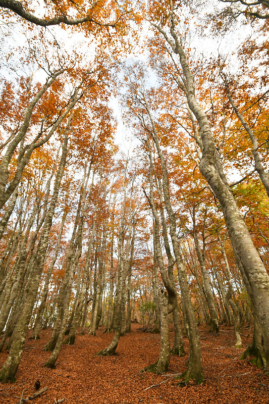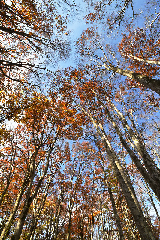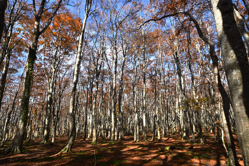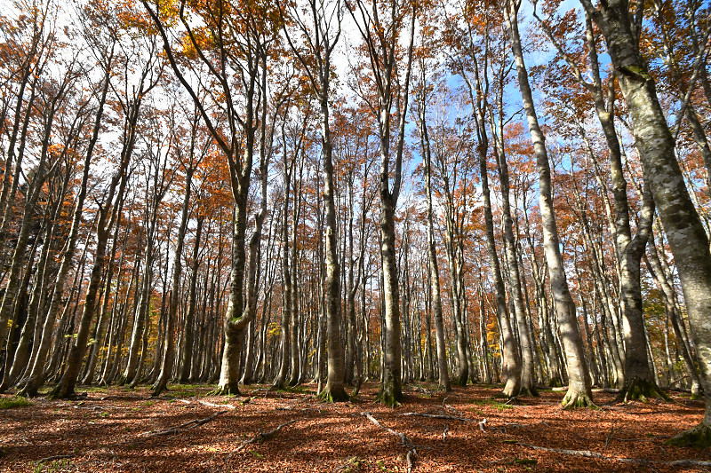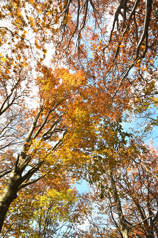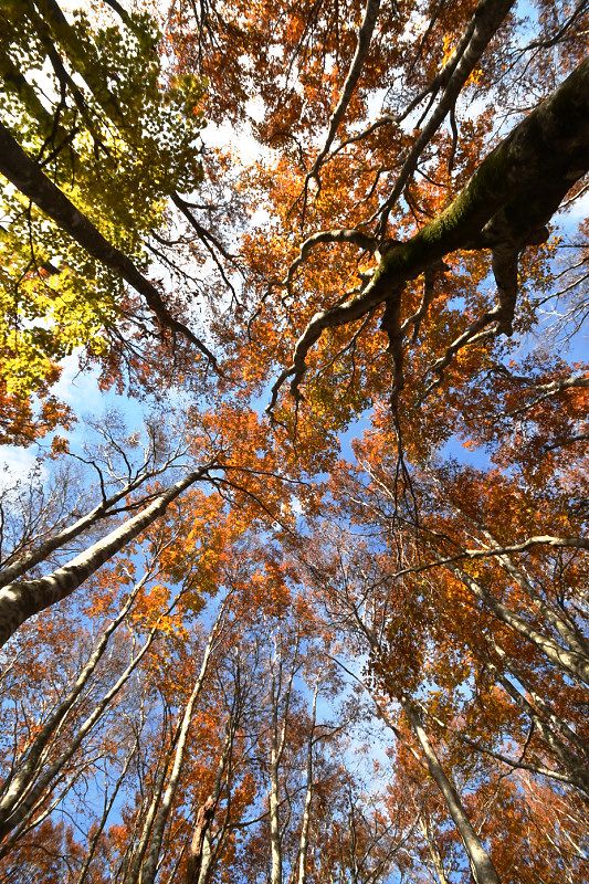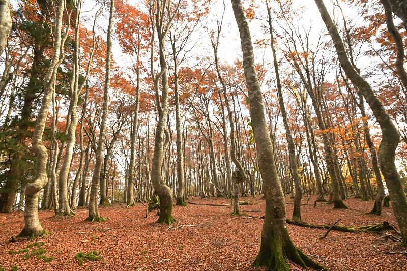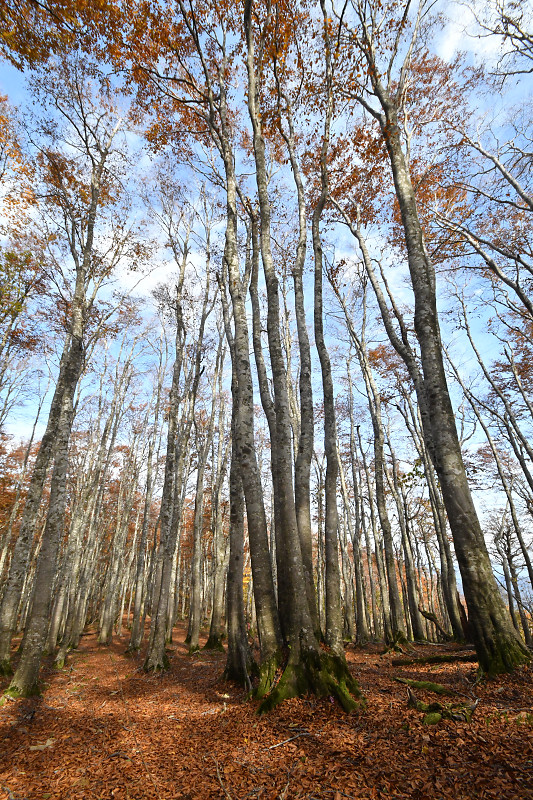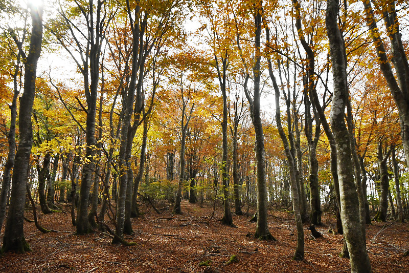 翌日には、鳥取県境の扇ノ山小ズッコブナ林を訪ねた。気温の高い秋が続いたせいか、例年だともうすっかり落葉して裸のブナ林のはずが、11月を過ぎても見頃の紅葉を楽しむことができた。