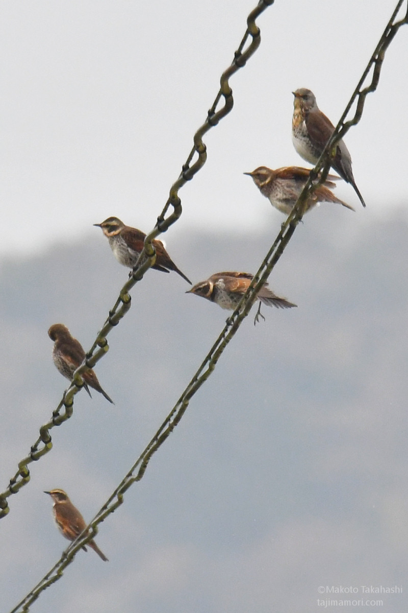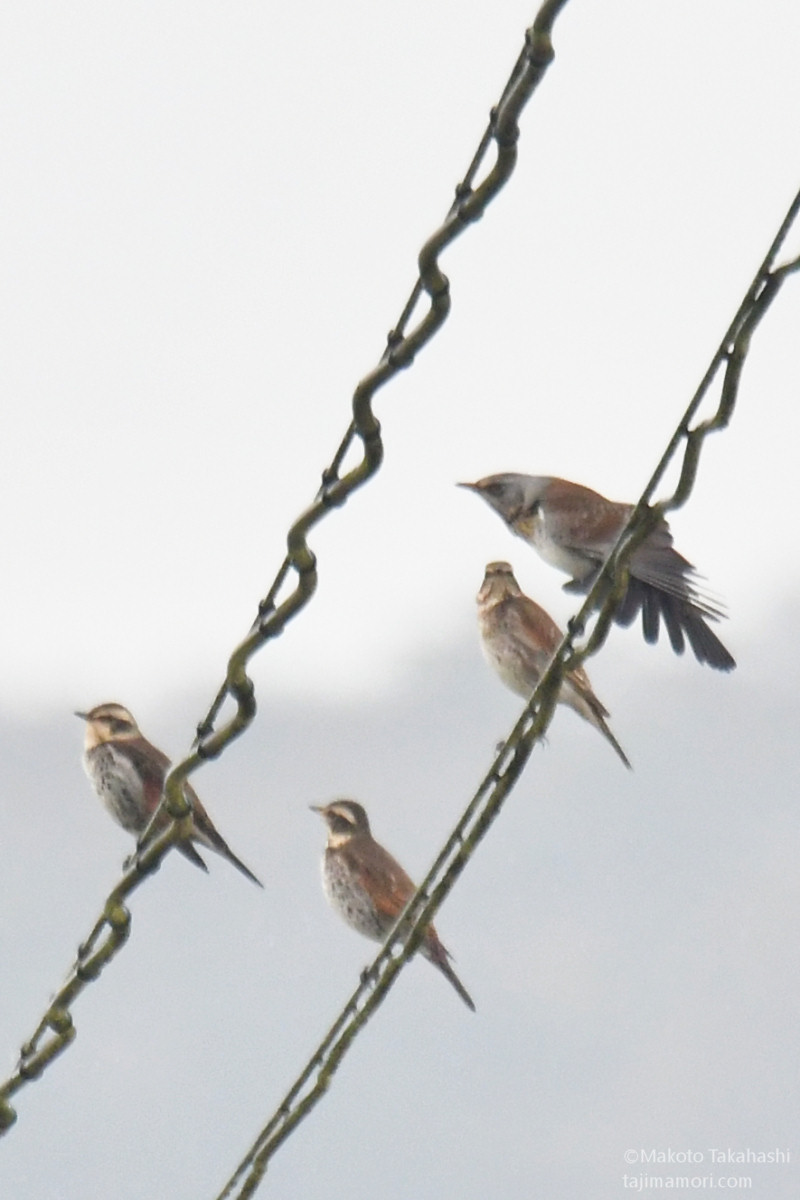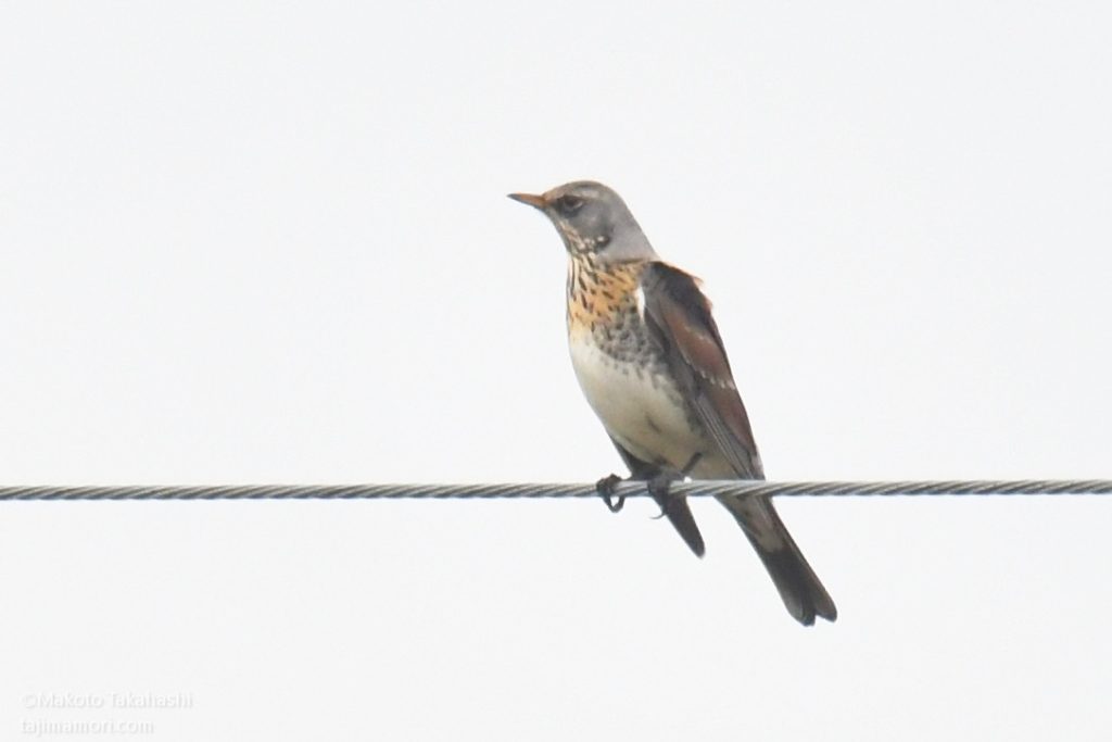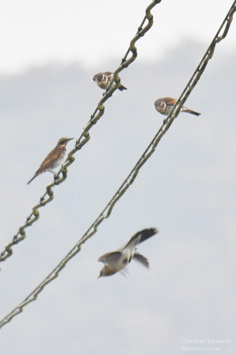 そんなツグミの大群の中に、変わった1羽を仲間が偶然発見した。電線に一列に並んだ中に、ひときわ大きな個体を見つけたのが、今回紹介するノハラツグミ(第1回冬羽)である。私は仲間が撮影した翌日に、同じエリアで運よく遭遇して撮影がかなったものである。ノハラツグミはヨーロッパの鳥で、日本での観察はごくまれな迷鳥。シベリア北部の生息地が重なったあたりから、ツグミの日本への渡りの群れに紛れ込んで来たものと推測される。兵庫県初観察種となるようである。