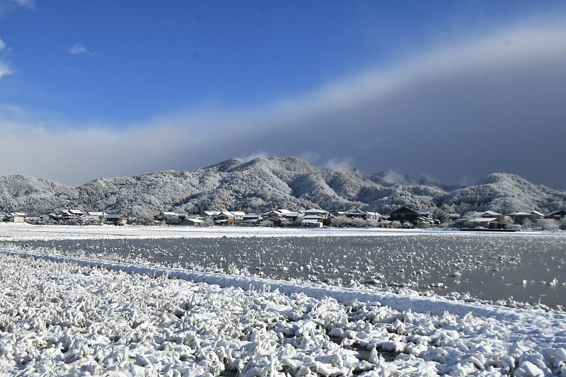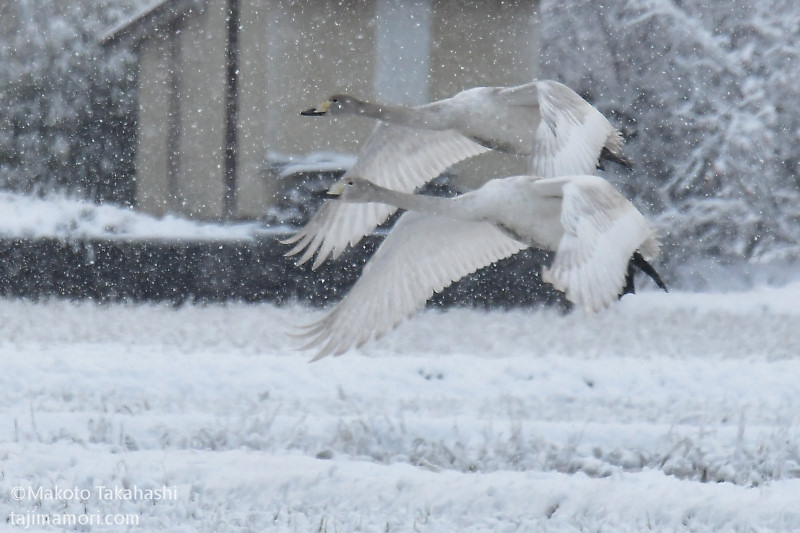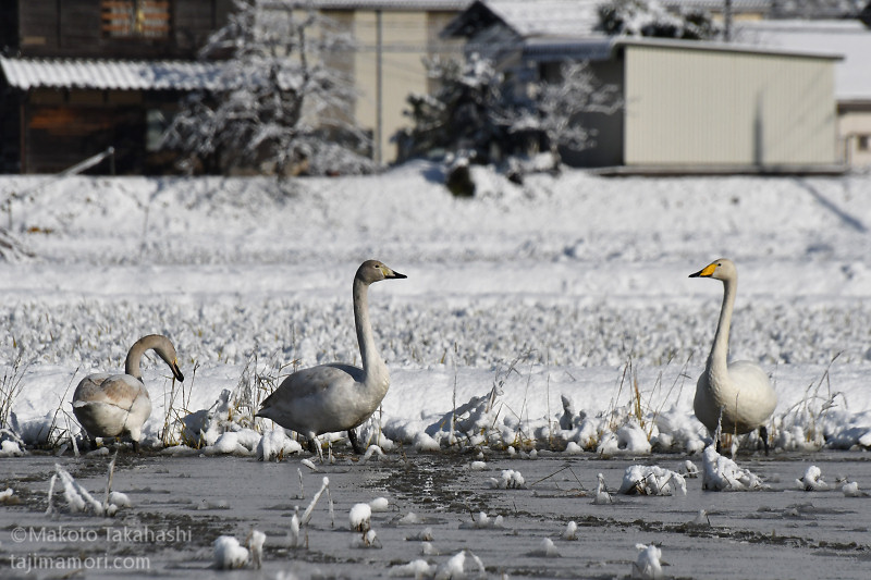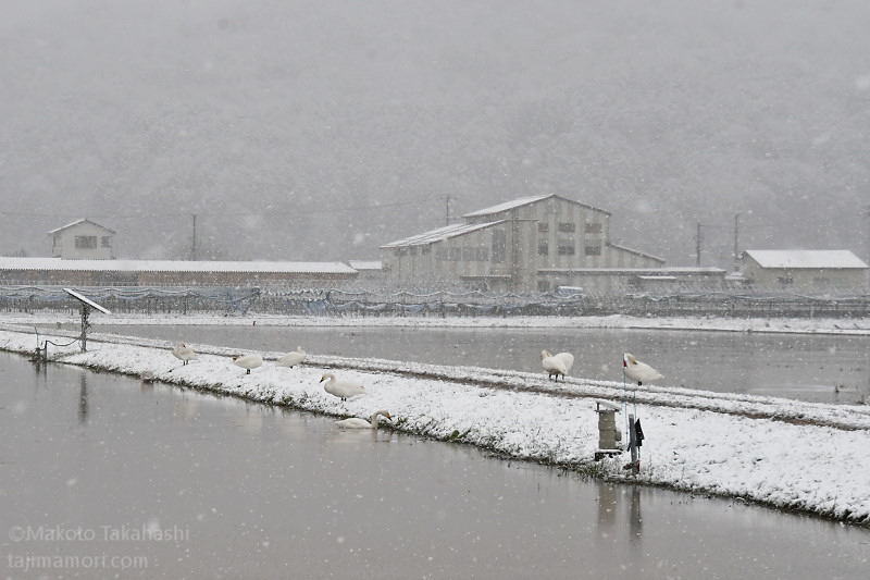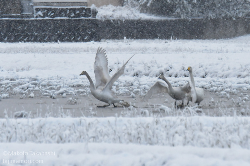 年末12月30日に、それまで11羽だったコハクチョウの群れに新たな6羽が合流し、17羽の越冬グループ形成となった。相変わらず、盆地内の複数の湛水田を移動しながら生活を続けている。