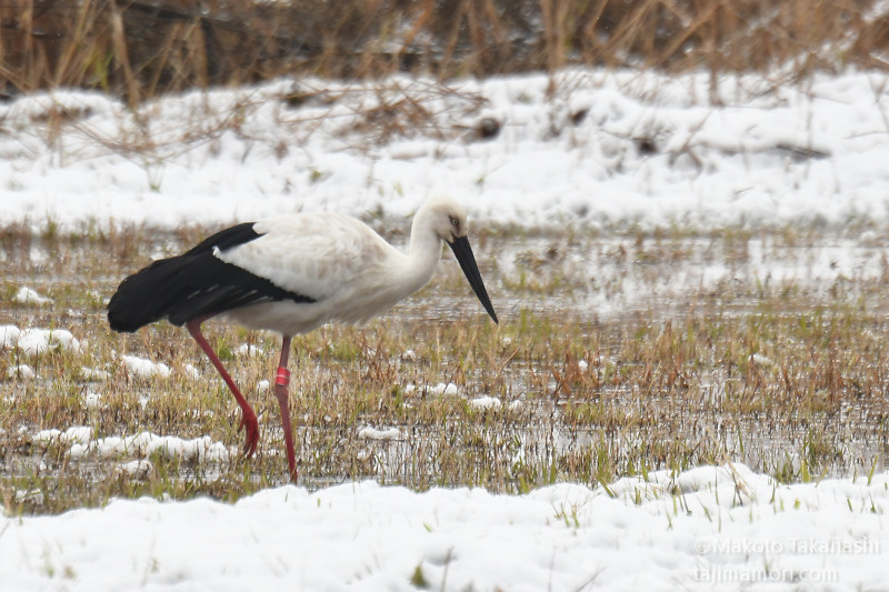 オオハクチョウ3羽は、今のところ、同じエリアに常駐を続けているもよう。以下、年を越したコハクチョウ17羽とオオハクチョウ3羽のスナップ。コガモとコウノトリのおまけ付き。