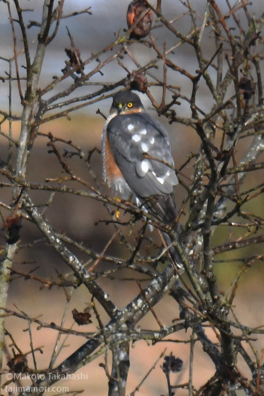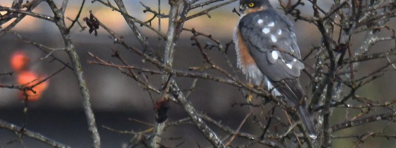 午後から出会ったのはハイタカ成鳥オス。2022年1月以来の2度目4年ぶりの観察。普段出会うハイタカは大概がメスタイプで、灰色の成鳥オスと出会うチャンスは滅多にない。オレンジ色の横斑とダークグレーのコントラストが美しい。
