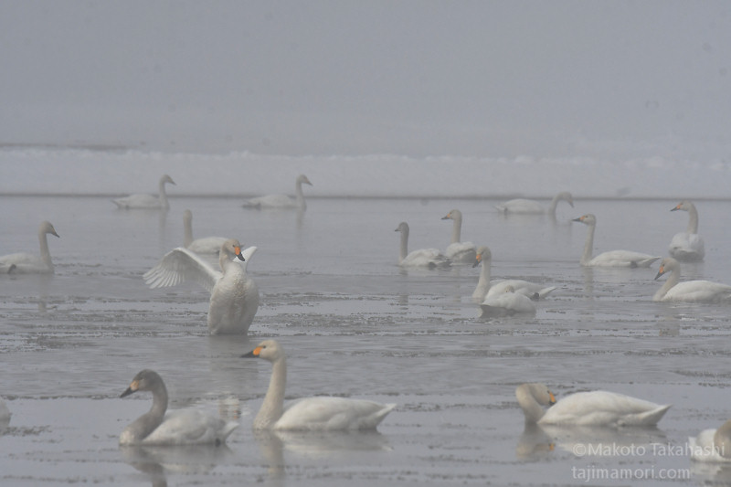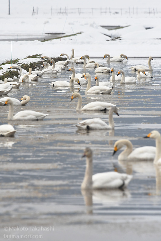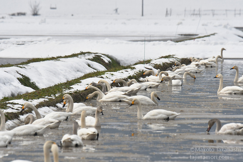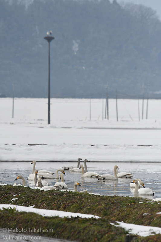 コハクチョウ62羽に増える 2026年2月19日野鳥 大雪の影響で、北の越冬地からの待避組が加わり、現時点で62羽のコハクチョウが逗留中である。ねぐらは六方田んぼの湛水田、餌場は盆地南の湛水田と移動している。円山川本流にもときどき待避しているのを見る。3月初めには北に向かうことだろう。 2026.2.12 D7500+VR300mmF4.0 Post Views: 46 投稿ナビゲーション 前の記事:コウノトリ繁殖期に入る